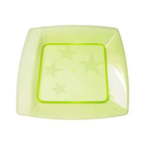 Descrição do Produto: Prato em Acrílico 21cm Quadrado Verde Limão Plastilânia c/ 10 Un.